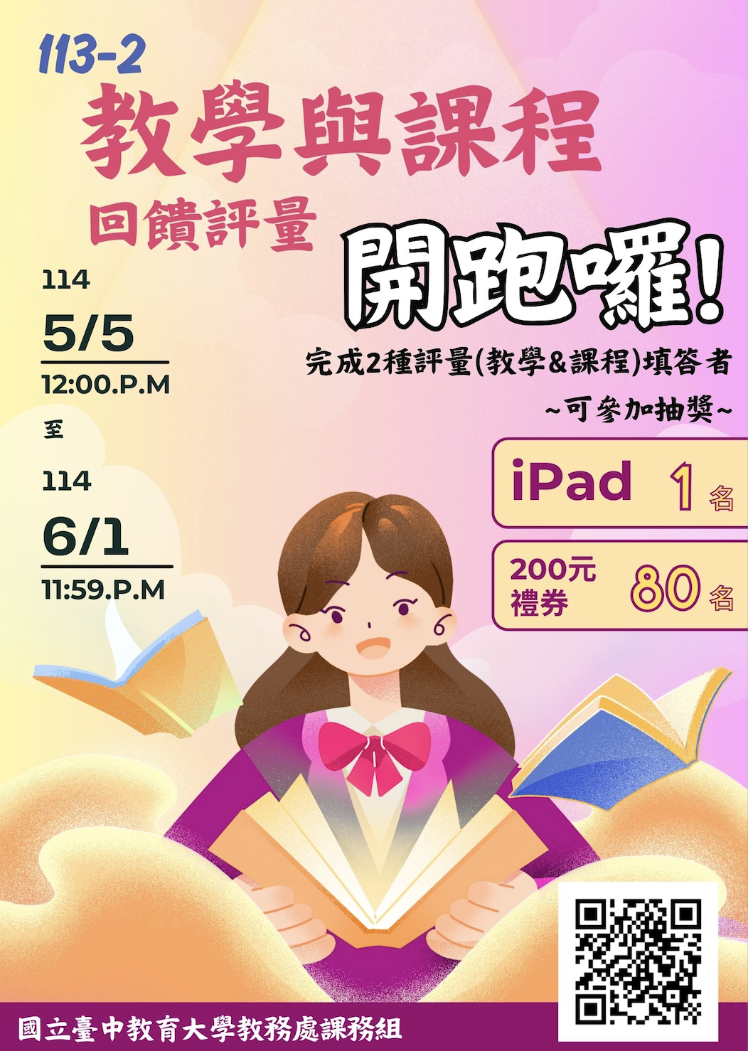 備註:教學與課程回饋評量2種皆須填畢,便具備抽獎資格。