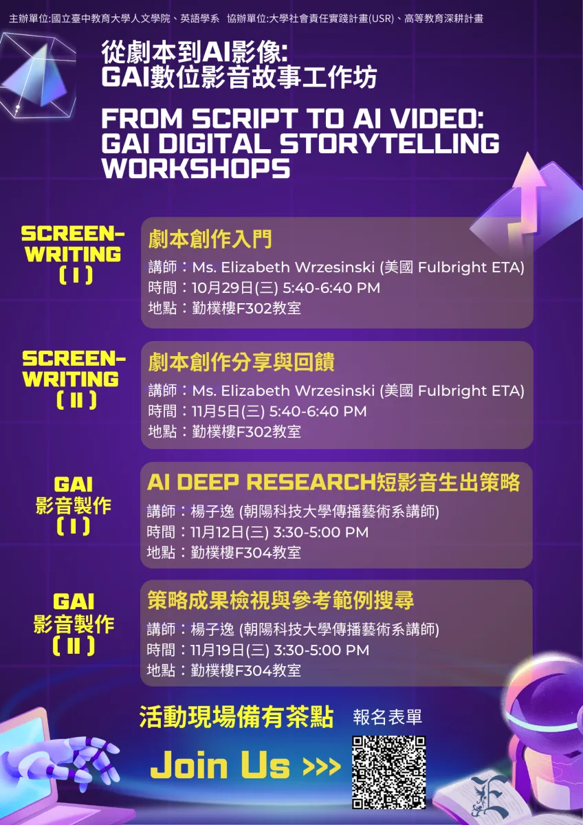 從劇本到AI影像:GAI數位故事創作工作坊(114年10月21日公告)