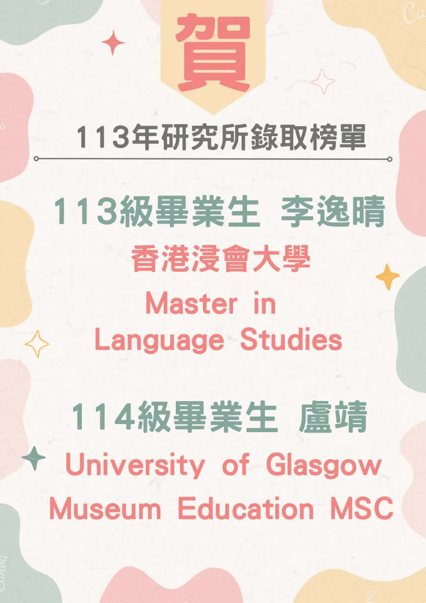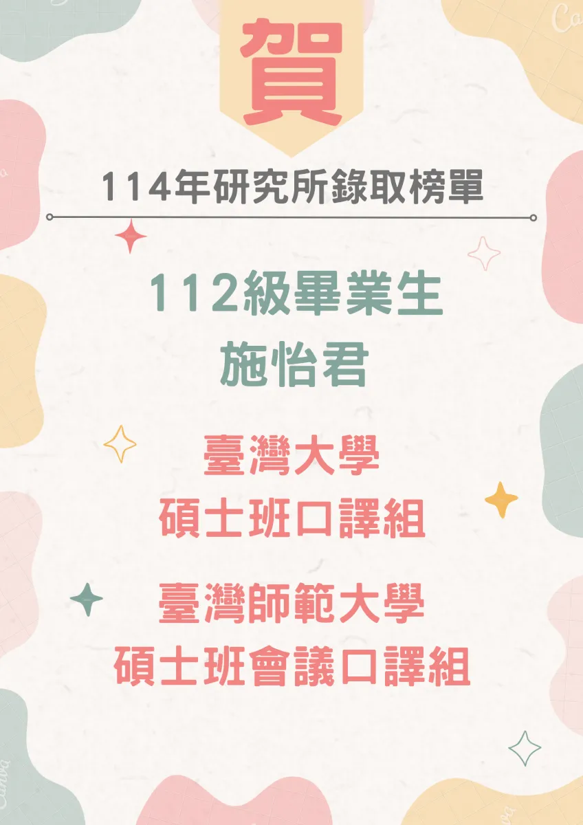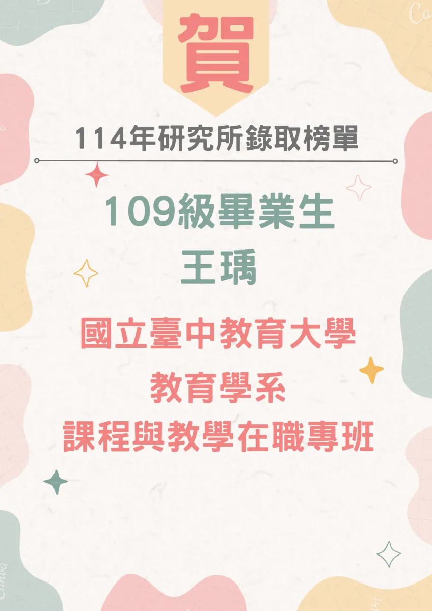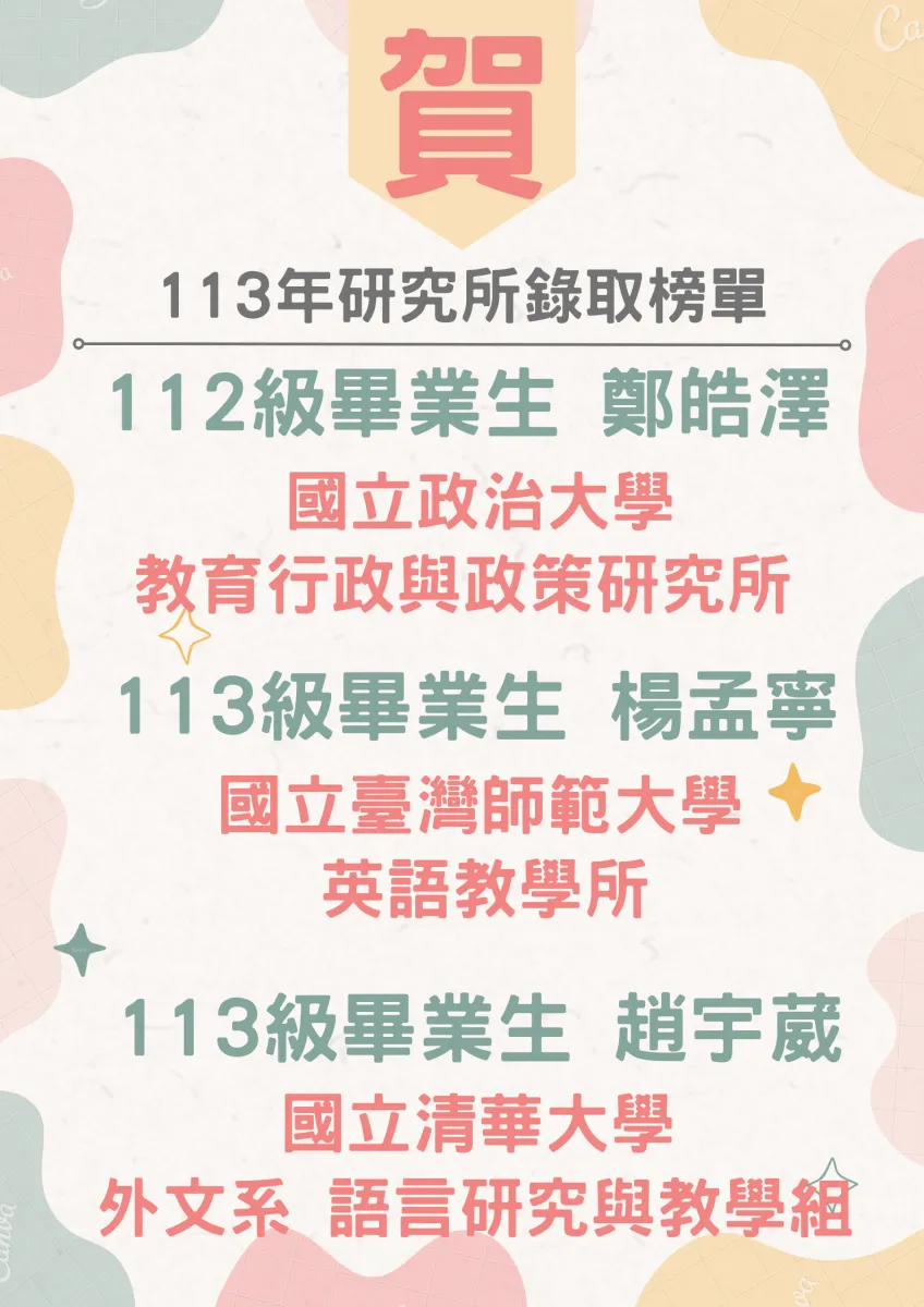 賀!本系畢業生113年至114年研究所錄取榜單 (114年7月18日公告)